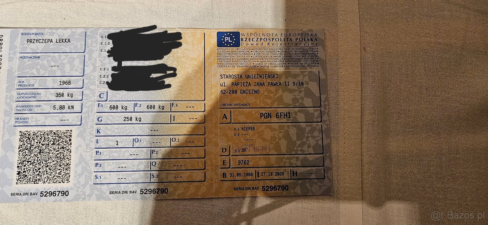 sprzedam pozostałość po przyczepie