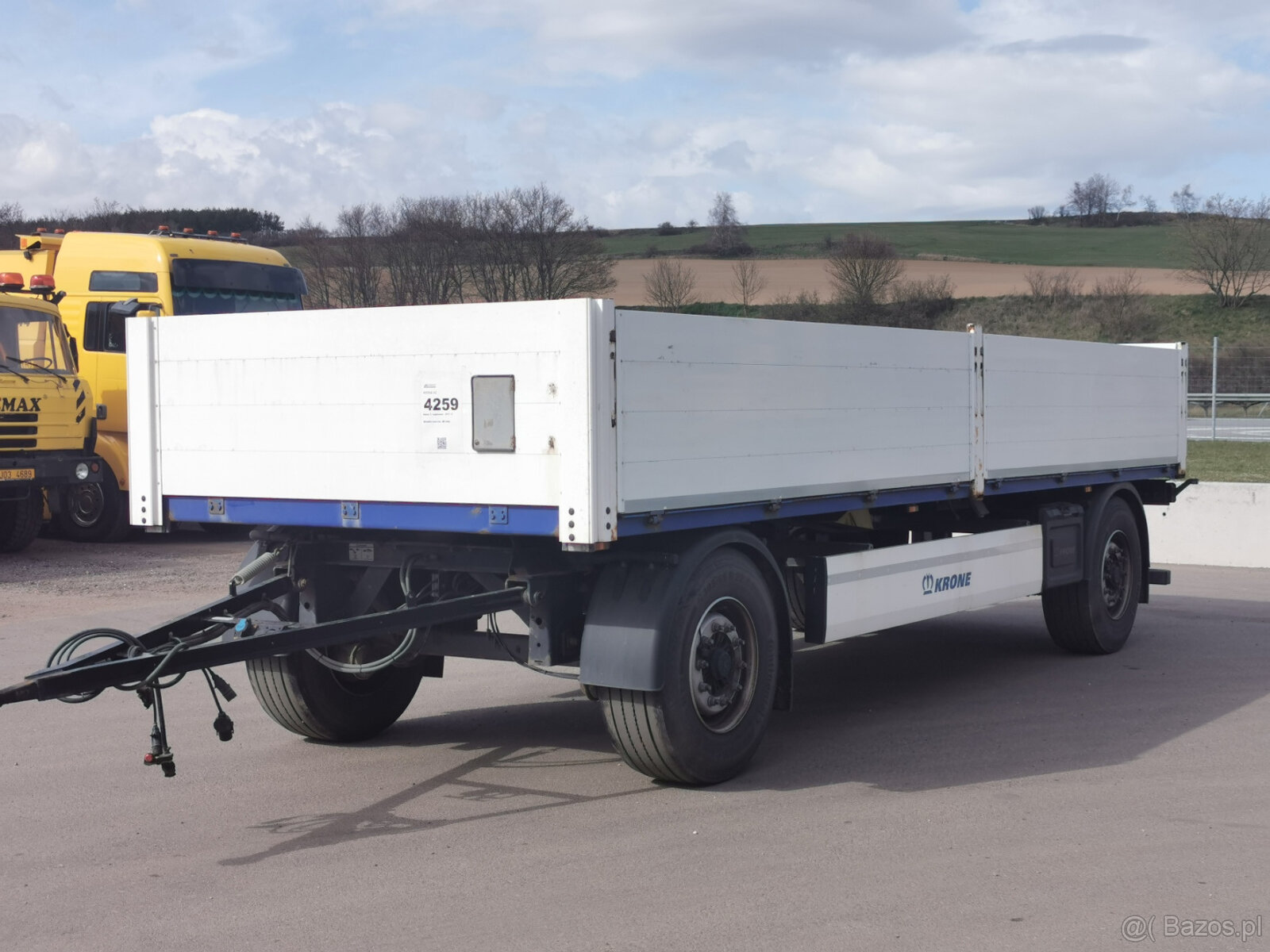 Sprzedam naczepę platformową KRONE - [29.1. 2026]Data pierwszej rejestracji: 13.08.2014, masa całkowita: 39 000 / 36 000 kg, masa eksploatacyjna: 6630 kg, ładowność: 29 370 kg, indeks: 4100, cena: 6.860,- € netto, więcej informacji pod numerem tel.