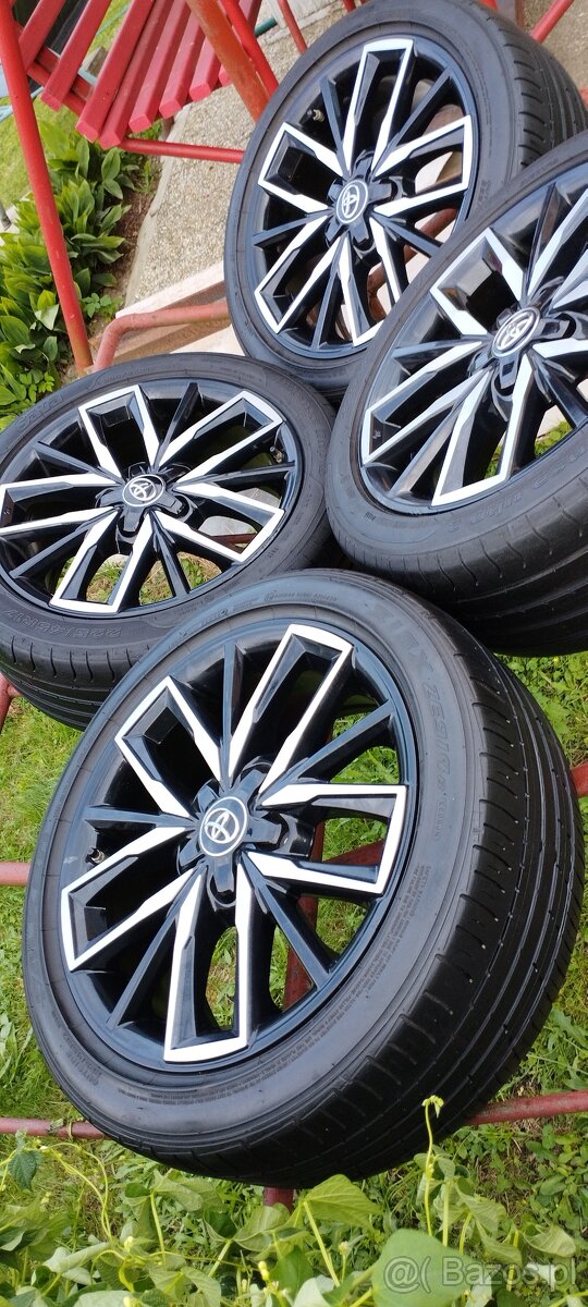 Witam, sprzedam original felgi aluminiowe do Toyoty Corolla hybrid 5x114,3 17". Cena obejmuje opony letnie 225/45 R17 Falken, Sava 4-4,5 mm oraz czujniki ciśnienia zaworów. Cena dotyczy sztuki. Cena 299 eur.