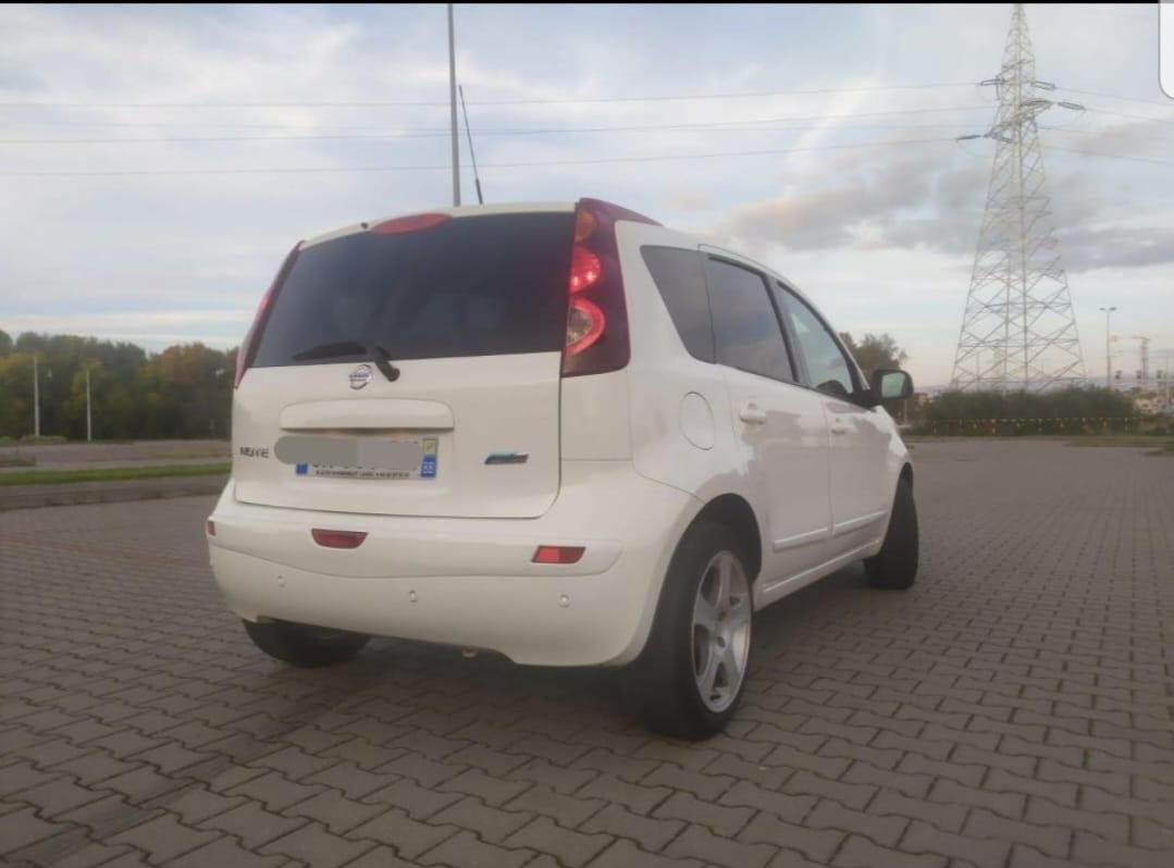 Nissan Note 1.4 benzyna -Gaz , Hak - [3.2. 2026]Nissan note zadbany benzyna -gaz silnik 1.4 przejechane 169000 , posiada klimatyzację butla ważna do 2033 r,jest autoalarm ,hak, przyciemniane szyby, składane lusterka. Posiada delikatne obtarcie na zderzaku tak jak na zdjęciu.